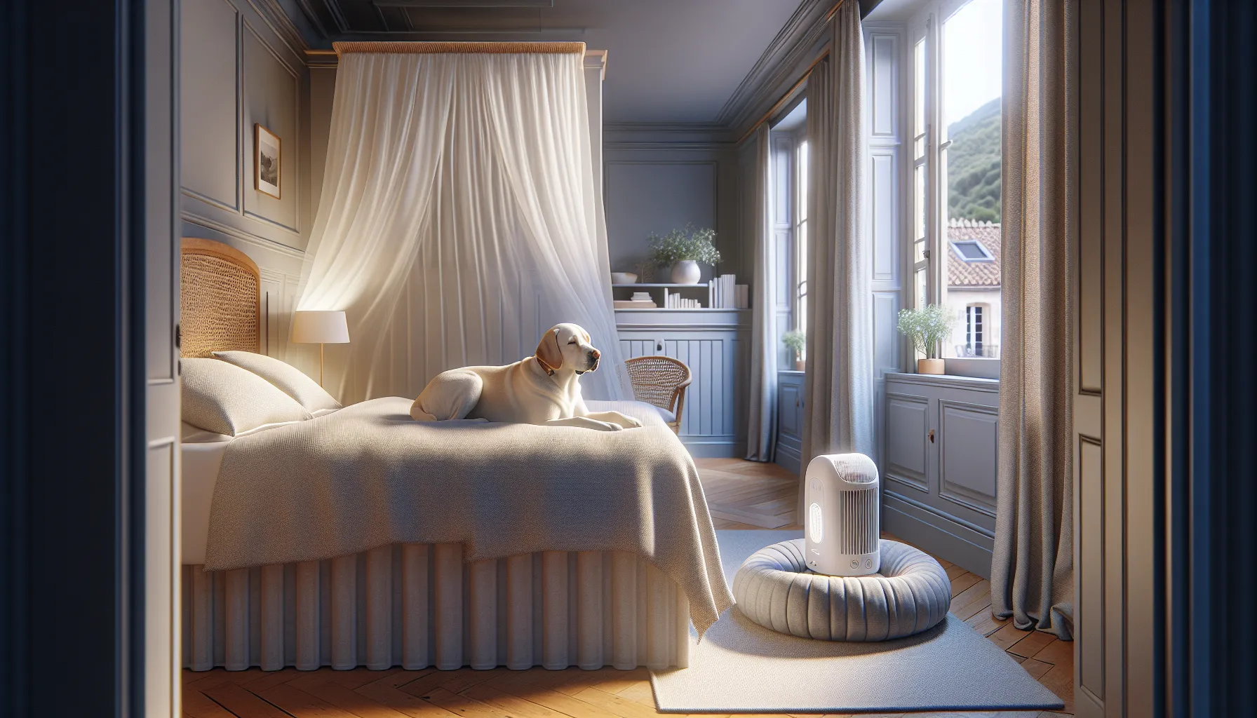 - Je isole visuellement avec un panneau opaque ou un rideau épais si la vue sur l’extérieur déclenche des aboiements.